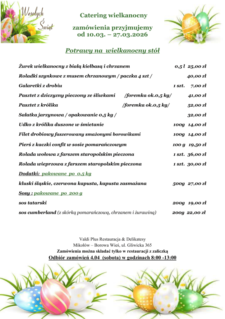 ZAPRASZAMY DO SKORZYSTANIA Z NASZEJ OFERTY WIELKANOCNEJ.